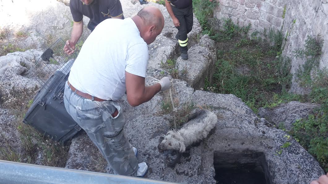 I nostri giovani escursionisti non si perdono d’animo e continuano, chiamando anche i carabinieri. C’è voluto l’intervento dei vigili del fuoco, dei volontari, del veterinario convenzionato e dei vigili urbani (che nel frattempo, instancabilmente, si erano liberati) per tirare fuori il povero animale del quel posto.