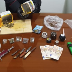 Nel corso delle attività svolte quotidianamente per il contrasto al fenomeno dello spaccio degli stupefacenti, i militari dell’Arma avevano raccolto informazioni dal territorio che conducevano ad una giovane coppia della cittadina marinara dedita allo spaccio. La perquisizione domiciliare ha permesso di rinvenire all’interno di una stanza dell’appartamento una busta con 35 grammi di marijuana e 4 grammi di hashish, inoltre, un bilancino, denaro contante verosimilmente provento di spaccio e diversi coltelli utilizzati per il taglio della droga.