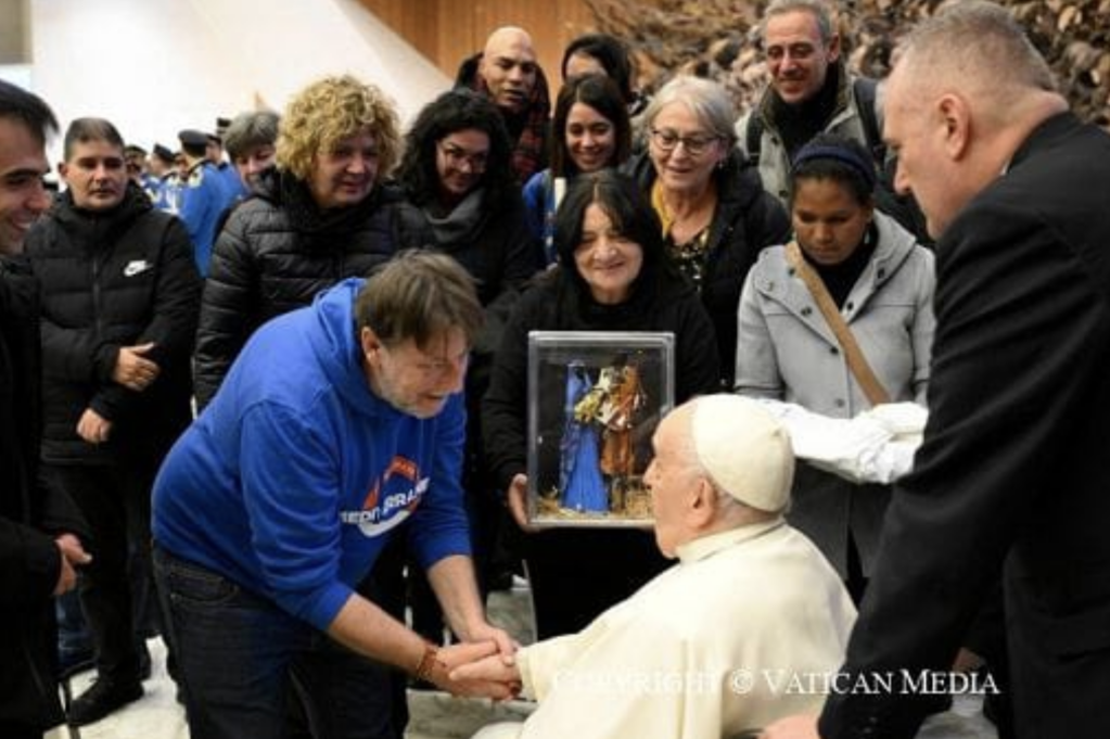 Prima dell’udienza generale, entrando in Aula Paolo VI, Papa Francesco ha salutato personalmente l’ex leader no-global Luca Casarini e alcuni rappresentanti della Mediterranea Saving Humans – di cui Casarini ora è capomissione – come testimoniano le fotografie pubblicate da Vatican Media. I membri della ong hanno donato a Bergoglio un presepe, in una teca, con Maria, Giuseppe e Gesù rappresentati con fisionomia e abiti tradizionali africani. Al termine dell’udienza, il Papa ha poi pubblicamente salutato “il gruppo di Mediterranea Saving Humans, che va in mare a salvare i poveretti che fuggono dalla schiavitù dell’Africa: fanno un bel lavoro questi, salvano tante gente”.
