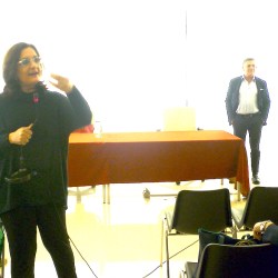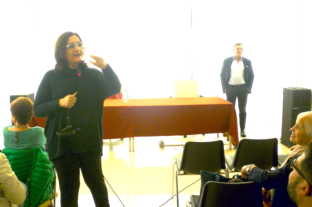 Nel giorno del compleanno del fratello Rosario Catena Fiorello ha coinvolto il numeroso pubblico confluito alla Biblioteca comunale per assistere, meglio dire partecipare, alla presentazione del suo libro “L’amore a due passi”. E lo ha fatto con la classe, con la spettacolare ed amichevole capacità di coinvolgimento (tipico dei germani Fiorello) del pubblico che ha addirittura “cantato” in “diretta telefonica” un brano dopo aver partecipato anche con alcuni spettatori direttamente all’evento. Insomma una grande protagonista di una serata che è stata si di cultura per il libro di Catena ma che ha anche raggiunto spunti di vero e proprio interesse partecipativo cui la grande catanese che vive adesso a Lecce ha saputo dare all’incontro. Alternando letture di pagine del libro a vere e proprie interviste brevi ma profonde con il pubblico la grande, grandissima Catena, ha saputo tenere altissimo l’interesse dei partecipanti all’evento per un paio d’ore ed alla fine il ringraziamento di tutto il pubblico è stato forte e spontaneo per aver saputo trasformare un evento culturale in un vero e proprio rapporto di amicizia.