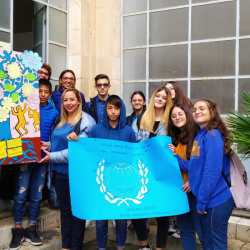 La manifestazione è dunque proseguita con una ricca serie di attività. Gli studenti delle classi I C e II B del Liceo Scientifico e della I A del Liceo Classico, sollecitati dai docenti Gaspare Aprile, Laura Dongola, Francesca Giambanco, hanno donato alla nuova sede provinciale UNICEF un’opera pittorica: un albero che ripercorre la metafora cara all’UNICEF dell’Albero dei Diritti, realizzato in un linguaggio contemporaneo – l’opera si ispira all’Albero della Vita di Haring. Hanno dunque argomentato ampiamente i sensi della Giornata e ‘completato’ l’opera pittorica con radici, foglie e petali, su cui erano stati riportati i diritti fondamentali dell’infanzia e dell’adolescenza.