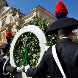 Agli onori militari resi ai Caduti dal picchetto interforze, costituito da uno schieramento dei reparti appartenenti ai Corpi Armati della provincia, affiancato dal Corpo Forestale e da una rappresentanza in uniforme composta da personale del Corpo militare, delle Infermiere Volontarie e dei Volontari del Soccorso della Croce Rossa Italiana, dai Vigili del Fuoco, dalla Polizia Provinciale e dalla Polizia Municipale di Ragusa, dai Gonfaloni di alcuni Comuni della provincia e dai Labari delle Associazioni Combattentistiche e d’Arma, è seguita la cerimonia dell’alzabandiera.