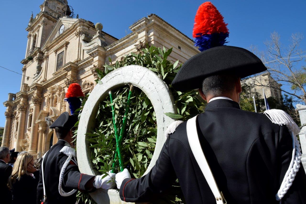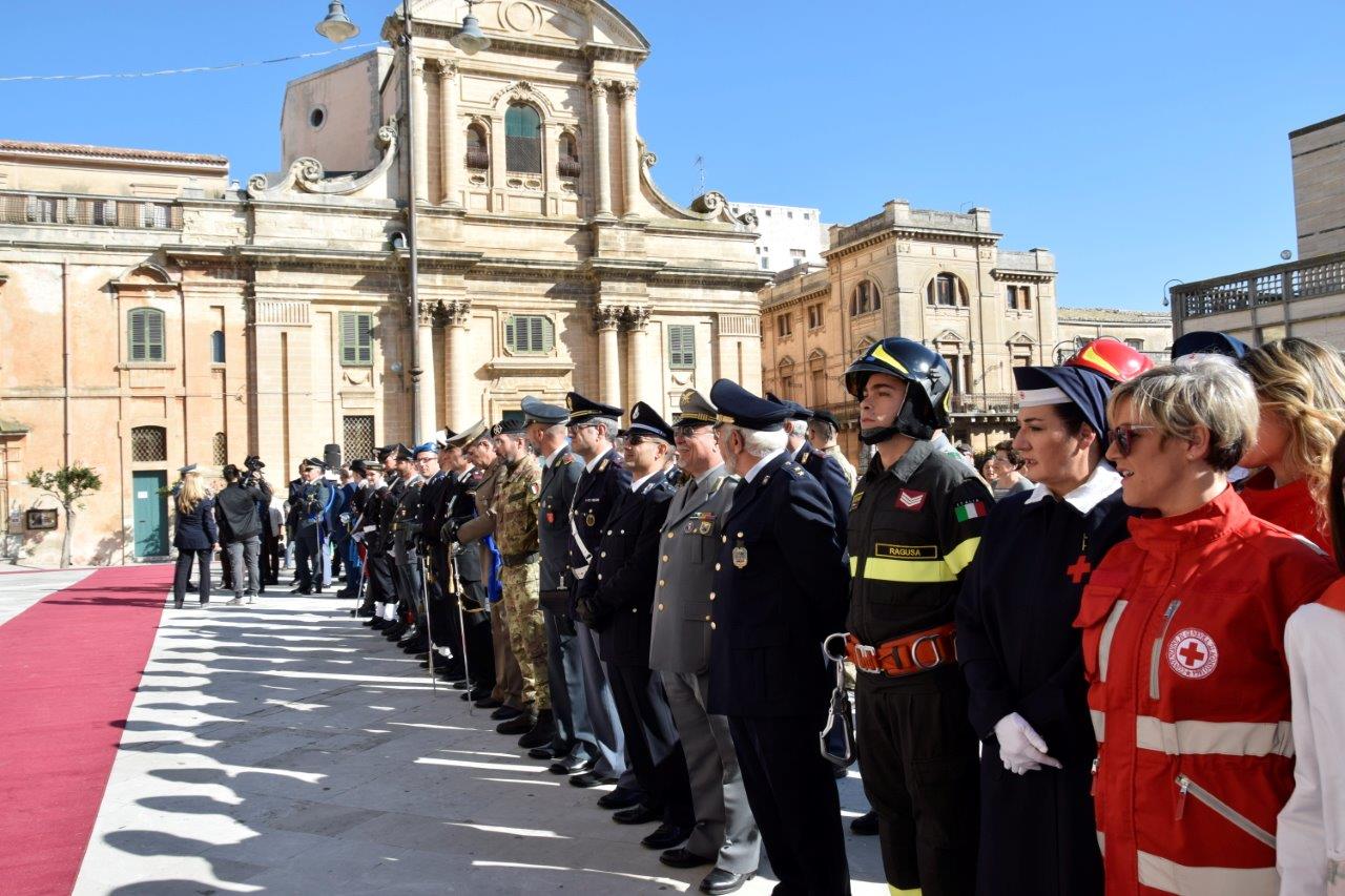Agli onori militari resi ai Caduti dal picchetto interforze, costituito da uno schieramento dei reparti appartenenti ai Corpi Armati della provincia, affiancato dal Corpo Forestale e da una rappresentanza in uniforme composta da personale del Corpo militare, delle Infermiere Volontarie e dei Volontari del Soccorso della Croce Rossa Italiana, dai Vigili del Fuoco, dalla Polizia Provinciale e dalla Polizia Municipale di Ragusa, dai Gonfaloni di alcuni Comuni della provincia e dai Labari delle Associazioni Combattentistiche e d’Arma, è seguita la cerimonia dell’alzabandiera.