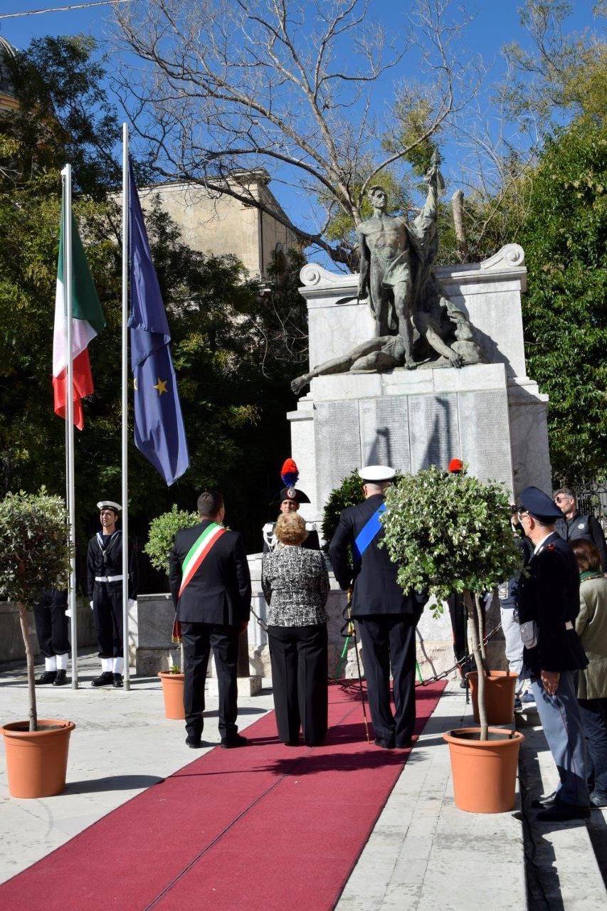 Dopo la deposizione della Corona, fortemente sentito è stato il momento della preghiera e della benedizione al Monumento ai Caduti a cura del Parroco della Cattedrale Don Giuseppe Burrafato, che ha reso ancora più densa di significato la ricorrenza, quest’anno peraltro connotata da una nutrita partecipazione del mondo della scuola che ha arricchito lo scenario della manifestazione, affiancandosi ai tanti cittadini spontaneamente convenuti per testimoniare unanimi sentimenti di italianità e per esternare, con la loro presenza, l’affetto e il riconoscimento per l’operato delle Forze Armate.