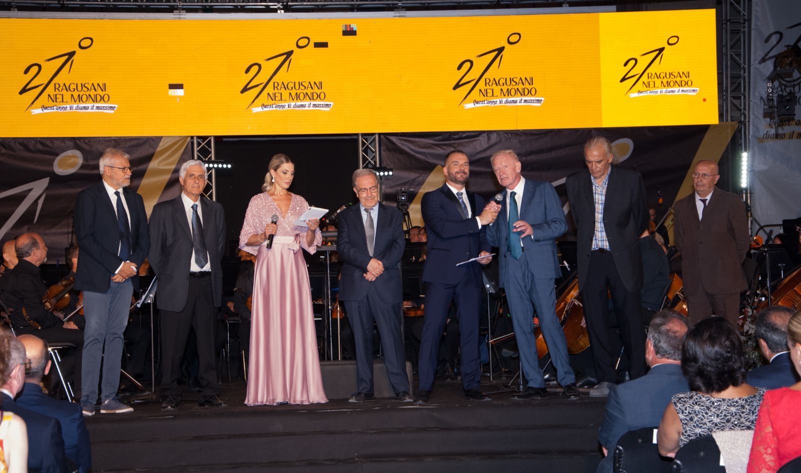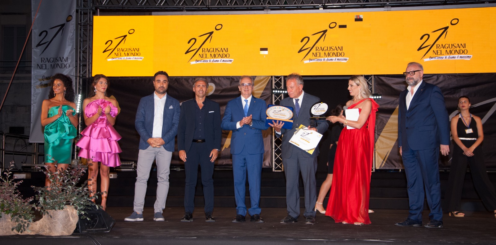 Più che soddisfatto l’intero direttivo dell’associazione Ragusani nel Mondo, con in testa il presidente Salvatore Brinch, il presidente onorario Franco Antoci e il direttore Sebastiano D’angelo, per una serata, l’ennesima, che resterà nella memoria collettiva, anche grazie ad una perfetta miscela con lo spettacolo e il glamour con la musica al pianoforte del maestro Peppe Arezzo, l’esibizione del soprano Manuela Cucuccio e del violinista Giovanni Cucuccio e con la presenza di Ludovica Cutuli, già Miss Eleganza Sicilia e finalista a Venezia del concorso Miss Italia 2021 e di Lucrezia Di Matteo eletta Miss Ragusa e adesso in gara nelle selezioni regionali di Miss Italia 2022. A fare da cerniera tra la prima e la seconda parte è stata l’effervescente comicità di Massimo Spata, ciliegina di una torta perfetta. Tra le novità anche la consegna di un premio alla memoria dei coniugi Giuseppe Azzara e Rosa Nobile, scomparsi in un incidente stradale, premio istituito dall’azienda Mondial Granit della famiglia Damigella e consegnato, alla presenza del figlio della coppia e del vescovo Giuseppe La Placa, al generale Carlo Corbinelli per simbolicamente ricordare tutti gli uomini delle forze dell’ordine impegnate nei controlli su strada, così come segnalato dalla sezione di Ragusa dell’Associazione nazionale familiari vittime della strada. Conclusione con la foto ricordo sul palco, scattata dal fotodocumentarista Giovanni Noto con tutti i protagonisti e l’appuntamento alla prossima edizione, la 28esima, che proietta il premio verso i tre decenni e tante altre nuove storie da raccontare.