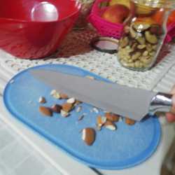 Anche il cioccolato dobbiamo tagliarlo grossolanamente al coltello e lo aggiungiamo al composto.