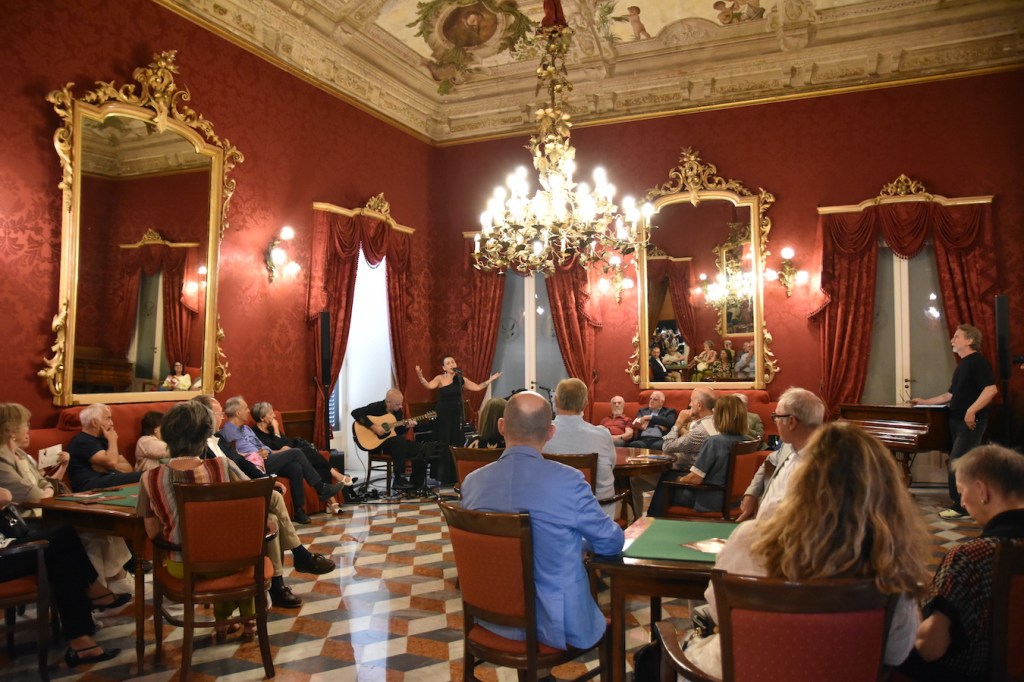 Tre sale, tre ambienti intimi, una platea di cento spettatori distribuita attorno a tavoli e poltrone: ieri pomeriggio e sera al Circolo di Conversazione di Ragusa Ibla, l’attore Cesare Bocci ha portato in scena i racconti di Montalbano con una formula tanto inedita quanto suggestiva. Seduti ai tavoli, tra luci soffuse e affreschi storici, gli spettatori hanno ascoltato Bocci muoversi fisicamente tra le tre stanze, dando voce alle parole di Camilleri. Non un recital tradizionale, ma una narrazione viva, alla quale si sono alternati brani musicali eseguiti dal vivo da Eleonora Bordonaro (voce e tamburello), Puccio Castrogiovanni (fisarmonica) e Marco Corbino (chitarra).