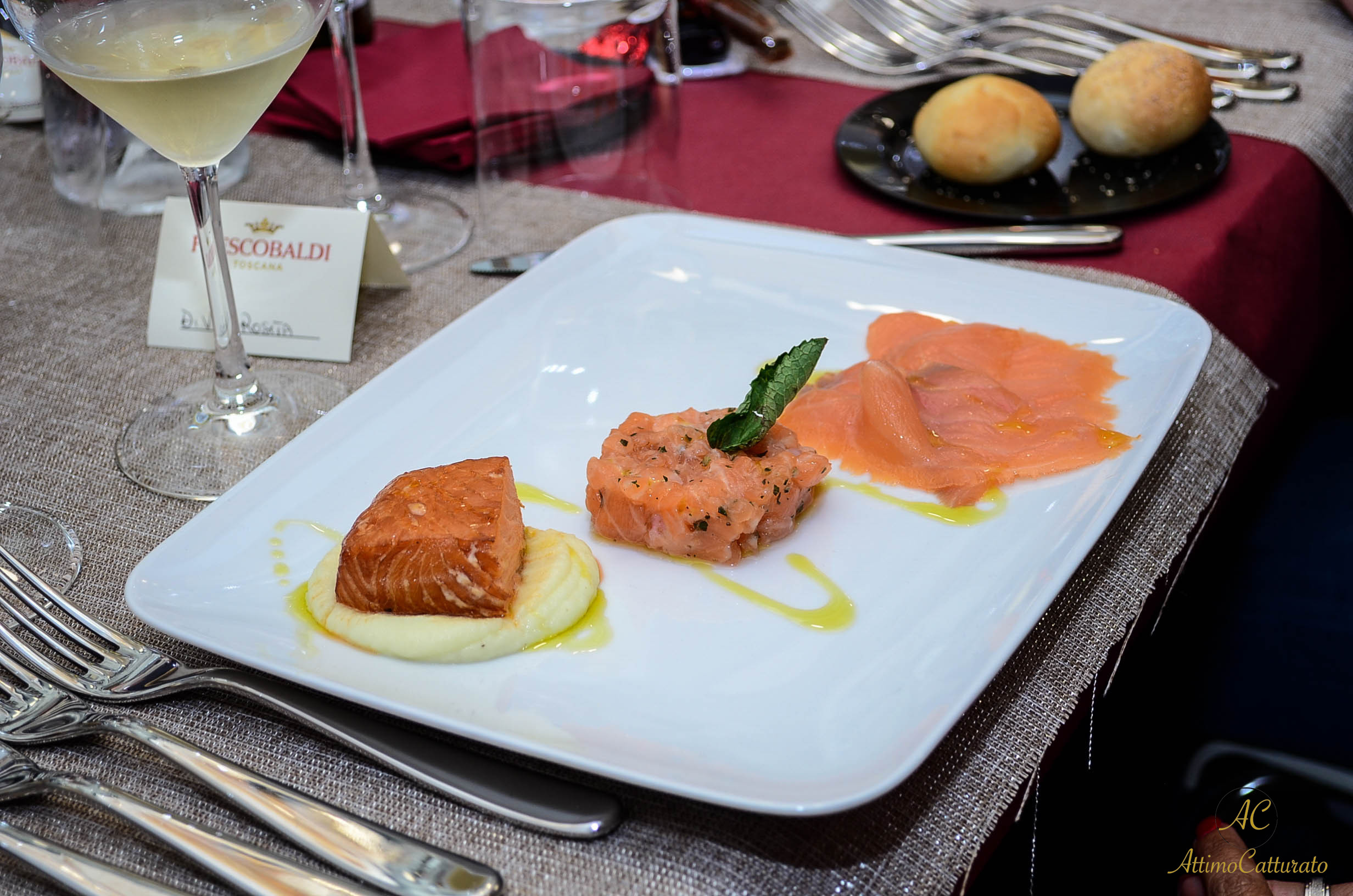 Non è stata una semplice cena, ma un viaggio nel mondo del vino e della cultura enologica. Sergio Di Loreto, sommelier, blogger, professore universitario e responsabile delle vendite alta gamma per i vini Marchesi dei Frescobaldi, ha incantato il pubblico che ha partecipato ad una cena organizzata da Gianni Arrabito presso l’Enoteca Enogastronomica Mattei di Salvatore Faviana. Per la prima volta, un evento è stato organizzato nei nuovissimi locali dell’enoteca: da un anno, infatti, si lavora all’apertura e adesso sarà possibile degustare nella saletta ottimi menù accompagnati da vini siciliani, italiani ed esteri (l’enoteca possiede più di 1800 bottiglie e 350 cantine). In compagnia di Sergio Di Loreto, è stato possibile degustare 5 vini Marchesi dei Frescobaldi, una delle più antiche e storiche aziende vinicole italiane. Con grande apertura verso il futuro, gli antenati della famiglia introdussero nel 1855 in Toscana dei vitigni allora sconosciuti tra cui Cabernet Sauvignon, Merlot, Pinot Nero e Chardonnay. Durante la sua appassionata “lectio magistralis”, è stato possibile degustare un Alìe Rosé, un vino Rosé elegante dal colore chiaro, con tenui riflessi rubino, un raffinato equilibrio tra Syrah e Vermentino, in accompagnamento ad una entrée di frittura mista su prato verde costituito da una crema al pistacchio. Il secondo vino degustato è stato il Cicinis Bianco, prodotto da un vigneto di Sauvignon blanc chiamato Cicinis sull’omonima collina nel cuore del Collio, in Friuli Venezia Giulia in abbinamento all’antipasto, una variazione di salmone cotto, crudo e affumicato. Un vino fermo particolarmente profumato, intenso, perfetto con piatti a base di pesce.
