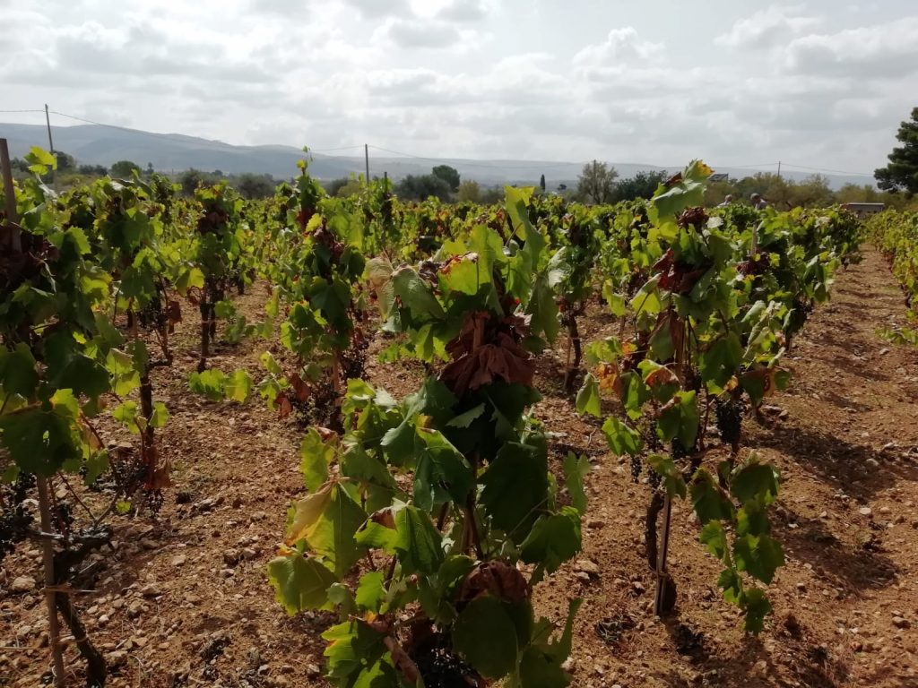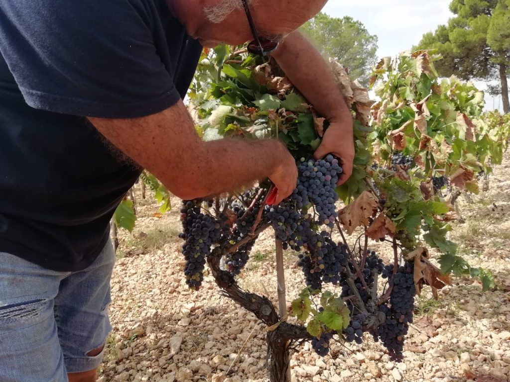 Vini Meridio lavora in biologico, quindi non è possibile intervenire “chimicamente” sul prodotto. Di Grazia, per farci comprendere meglio, ci spiega il rapporto uve/litri di vino: “Per fare un litro di vino, generalmente, ci vuole una pianta, un alberello. Quest’anno ce ne vogliono due. Il problema è stato dovuto non solo all’estate calda, ma anche all’assenza di escursioni termiche alla sera. Di solito rinfresca sempre, ma quest’anno c’erano trenta gradi anche di notte e le piante sono andate in sofferenza. Dopo febbraio, poi, non ha piovuto mai. Sono sei mesi che le piante non hanno acqua”.