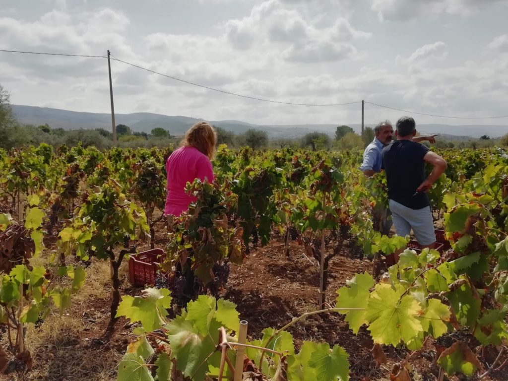 Il caldo umido non ha risparmiato la festa della vendemmia 2021 svoltasi presso l’azienda Vini Meridio, a Chiaramonte Gulfi, il 25 settembre. Una bellissima mattinata ha accompagnato la vendemmia di una trentina di persone che, come da tradizione, hanno deciso di partecipare attivamente a una delle attività lavorative più antiche che l’uomo possa ricordare. E’ una festa in piena regola, dove il lavoro si accompagna ad una battuta scherzosa e al buonumore. Non si percepisce stanchezza, né senso del dovere: la vendemmia, da queste parti, è un evento sociale, condiviso con gli amici e con si vuole avere accanto, fra un sorso di vino e del cibo squisito.