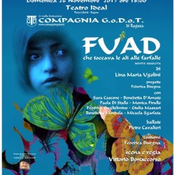 La Compagnia G.o.D.o.T. di Ragusa celebra la Giornata internazionale sulla violenza contro le donne con uno spettacolo intenso e toccante. Venerdì 24, sabato 25 e domenica 26 novembre, all’interno della 13^ stagione teatrale “Palchi DiVersi”, in scena al Teatro Ideal di Ragusa la prima assoluta del monologo “FUAD che toccava le ali alle farfalle”. L’opera è tratta dall’omonimo romanzo (ed Splen edizioni) di Lina Maria Ugolini, nota scrittrice e amica della compagnia di Vittorio Bonaccorso e di Federica Bisegna con cui si è sviluppato ormai da tempo un proficuo percorso lavorativo (la Ugolini scrisse infatti il suo primo lavoro teatrale “Un prestigiatore molto mago” proprio per la compagnia ragusana). La stessa Ugolini ha curato la riduzione del testo per la messa in scena, la regia è di Vittorio Bonaccorso, mentre il progetto teatrale e i costumi sono di Federica Bisegna e le ballate di Pietro Cavalieri.