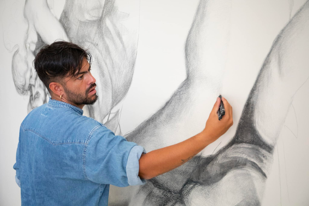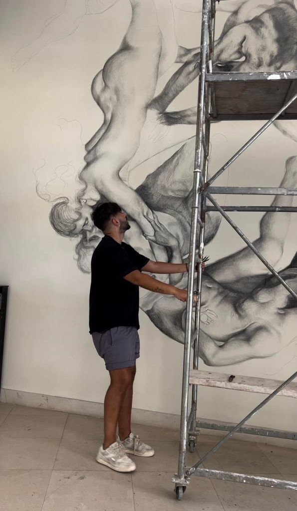 C’è grande attesa per la svelatura dell’opera in programma sabato 2 settembre alle 19. Da un mese a questa parte il giovane Giuliano Macca, di origini modicane che vive e lavora ad Amsterdam alla sua prima committenza istituzionale, sta realizzando nella hall del cinema di Largo Gramsci. Per la società Novecento, che si è aggiudicata il bando per la gestione del cineteatro Italia di Scicli, è stata un’idea vincente. C’è grande attesa. Fondamentale per la realizzazione di questo progetto è stato il sostegno di Gowen Contemporary, galleria di Giuliano con sede a Ginevra: la galleria ha deciso di finanziare l’intervento dell’artista nella sua Sicilia permettendogli inoltre di concedersi del tempo atto alla realizzazione di questa prestigiosa commissione. Le Muse, protettrici delle arti e figlie della memoria nell’Olimpo degli Dei, ben si collocano in questo scenario creativo in fase di ultimazione con la tecnica della grafite e del carbone, materiali simbolo di un processo di trasformazione (organica) che l’artista volutamente spesso ricorda nella sua tecnica artistica.