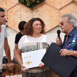 RAGUSA – Con “Artificialia”, Irene Minissale ha vinto il primo premio di #met2b, il progetto di arte urbana promosso dal Met a Marina di Ragusa. Ieri una divertente e partecipata cerimonia di premiazione, seguita come di consueto da un’agguerrita e spassosa asta di vendita che chiude ogni edizione dell’Urban Art MEeTing, appuntamento artistico e creativo più atteso dell’estate iblea curato dai direttori artistici Elisa Muccio e Danilo Dimartino e promosso da Thomas Battaglia del Met. L’opera della Minissale esprime una denuncia sociale. “In un futuro non troppo lontano, i giardini, come sono oggi, forse non esisteranno più: distese di erba sintetica senza bisogno di irrigazione, asettiche, senza profumi e odori, illuminate rigorosamente da luce artificiale. Flora e fauna meccanica e radiocomandata: una fredda imitazione della vita. 100% effetto reale”. A consegnare il primo premio alla vincitrice di questa edizione il maestro fotografo Giuseppe Leone, presidente della giuria che ha valutato i vari lavori nei giorni scorsi. E’ stato assegnato anche un premio speciale all’opera “To bee or not to bee” di Irene Meli che ha ricevuto un’opera fotografica ai sali d’argento del maestro Leone. Ben sei invece le menzioni speciali per l’elevato numero di voti ottenuti dalla giuria, andate a “Insaziabeele” di Marta Terranova e Dario Boncoraglio, “Bee house” di Salvatore Ciantia, “A Lapa ri Enzu (u’mpallatu)” di Alessandro e Angelo Ferreri, “Cliff Diving” di O-HA, “Ap(p)eso ad un filo” di Enzo Di Leone e a “Nun ci capi” di Antonio Pedroli. Straordinari i numeri registrati quest’anno dalla pagina Facebook, che ha superato quelli già altissimi degli anni scorsi. Ad aggiudicarsi il premio social l’opera “Be(e)hind, ciò che sta dietro” realizzata da Serena Ballirò, Emanuele Leggio, Sara Paternò e Angelo Vivera, con più di 1.000 like ottenuti con la sua foto sull’album divenuto straordinariamente virale in questi giorni, raggiungendo quasi 120.000 persone. Come sempre il momento finale si è trasformato in un pomeriggio all’insegna dell’allegria e del divertimento grazie anche alla simpatia travolgente di Alessio Boschi, conduttore radiofonico nell’insolita veste del battitore d’asta, e di Fabio Lazzara, sua simpaticissima “spalla”. In tantissimi hanno riempito piazza Torre a Marina di Ragusa per assistere all’asta e aggiudicarsi una delle 51 opere realizzate in questa edizione. Tema del progetto 2017 le api e il loro straordinario e affascinante mondo. Ai creativi è stato poi dato il compito di realizzare la loro opera partendo da speciali celle, esposte sulla parete frontale del Met a comporre un alveare gigante. La giuria, oltre al presidente Leone, era composta dai direttori artistici del progetto, gli architetti Elisa Muccio e Danilo Dimartino, da Thomas Battaglia del Met, da Rita Benedetto di Go Marketing e Co., agenzia che ha curato l’immagine grafica, dal regista Vincenzo Cascone, che ha raccontato il progetto con un suo video, da Michelangelo Barbagallo e Carmelo Saccone di MediaLive, che ne hanno curato l’ufficio stampa e la promozione social. Sostenitori dell’edizione 2017 sono Ottica Spoto, Repack, Il legno, Go Marketing & Comunicazione, Leggio Ferramenta e Colori, Despar, Ape Nera, Edil Group, Banca Agricola Popolare di Ragusa, Amplifon Filiale di Ragusa, L.T. Noleggi, Elle Due. Per maggiori info è possibile visitare la pagina facebook del Met www.facebook.com/metsicilia.