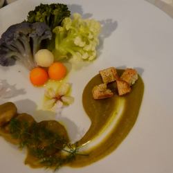 *IL PRIMO PREMIO** è andato all’ IIS “G. Marconi” di Vittoria con gli aspiranti maître Rudy Pitrolo e Miriana Moreno accompagnati dal prof. Maurizio Alescio. Hanno presentato un piatto innovativo valorizzando la fava cottoia, le verdure cotte al vapore e il maialino nero degli Iblei.*