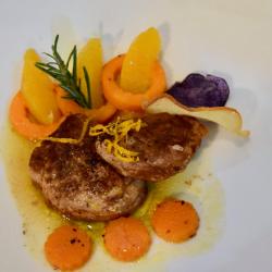 *IL TERZO PREMIO** è stato assegnato all’IPS “G. Ferraris” di Ragusa con le aspiranti maître Matilde Piccitto e Jenny Oro accompagnati dal prof. Giorgio Comitini. Hanno proposto un filetto di maialino addolcito con farina di carrubo e un’insalata d’arance rivisitata a caldo con zucca, guarnendo il tutto con chips di patate viola e chips di pane.*