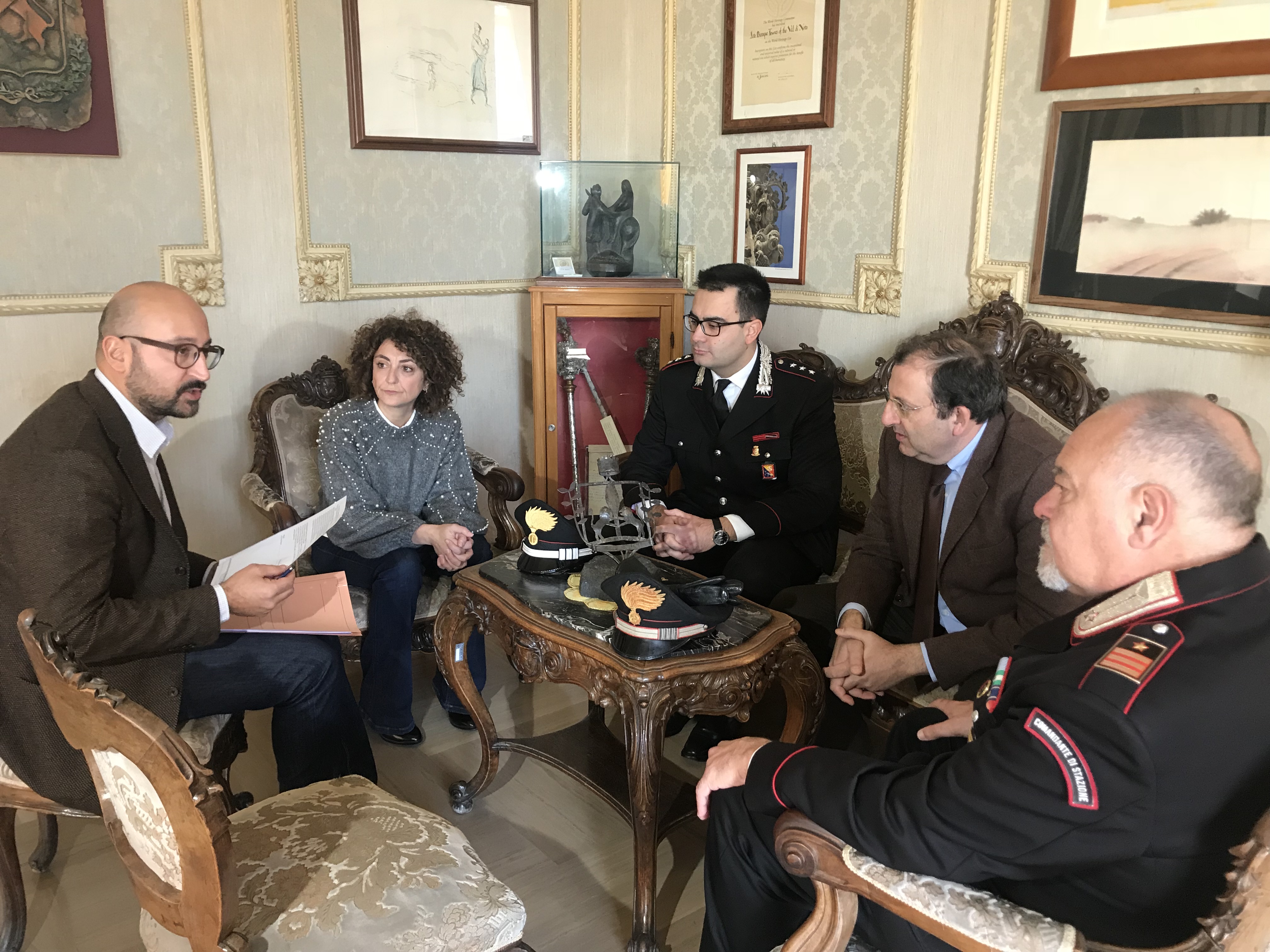 Cerimonia nella stanza del sindaco di Scicli, di consegna della nuova caserma dei carabinieri di Donnalucata all’Arma.