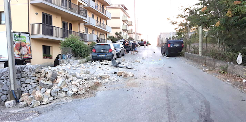 Contro muretto a secco, auto si ribalta