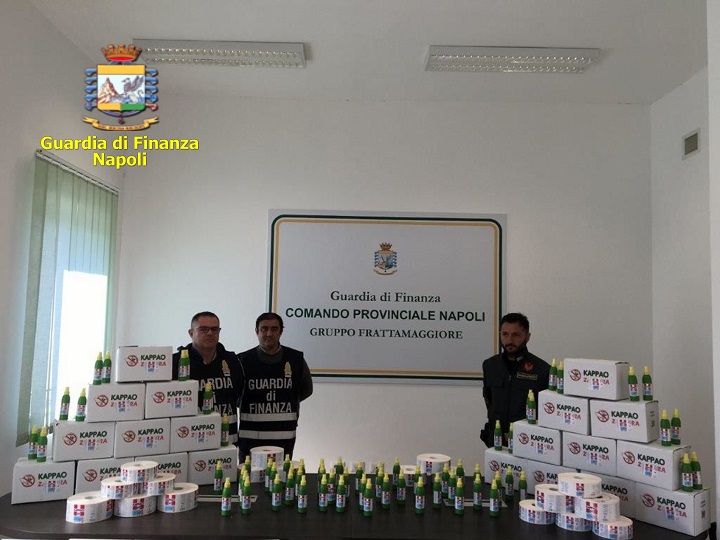 NAPOLI (ITALPRESS) – Il Comando provinciale della Guardia di Finanza di Napoli, nell’ambito dei servizi di controllo del territorio per l’emergenza Covid – 19, ha sequestrato a Sant’Antimo una fabbrica di detersivi e saponi e oltre 400 litri di igienizzante per mani prodotto senza alcuna autorizzazione ministeriale. In particolare, i militari del Gruppo di Frattamaggiore, a seguito di specifiche analisi di rischio effettuate anche attraverso le piattaforme di vendita on line, hanno individuato e perquisito l’azienda, e sequestrato circa 300 litri di igienizzante sfuso, 792 flaconi da 150 ml di igienizzante pronti per l’immissione in vendita e piu’ di 100.000 etichette ingannevoli. Sequestrati anche migliaia di flaconi di vari prodotti per l’igiene della persona pronti per la vendita, 28.000 litri degli stessi prodotti sfusi, nonche’ macchinari per l’imbottigliamento e l’etichettatura dei flaconi.