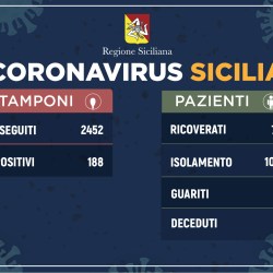 Coronavirus: l’aggiornamento in Sicilia, 188 positivi e 7 guariti