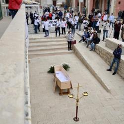 “Così muore un imprenditore”. E le licenze gettate in una bara. Flash mob di ristoratori e Partite Iva davanti alla casa di Montalbano