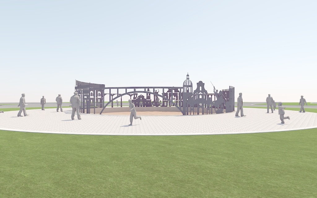 Qui sarà installato il “carosello”, un complesso di pannelli in lamiera alti 3 metri che riprodurranno i luoghi simbolo della nostra città. Le sagome di ponti, palazzi, chiese, piazze, del Castello di Donnafugata accoglieranno chi arriva in città, in un movimento a 360° che offrirà scorci diversi da ogni prospettiva.