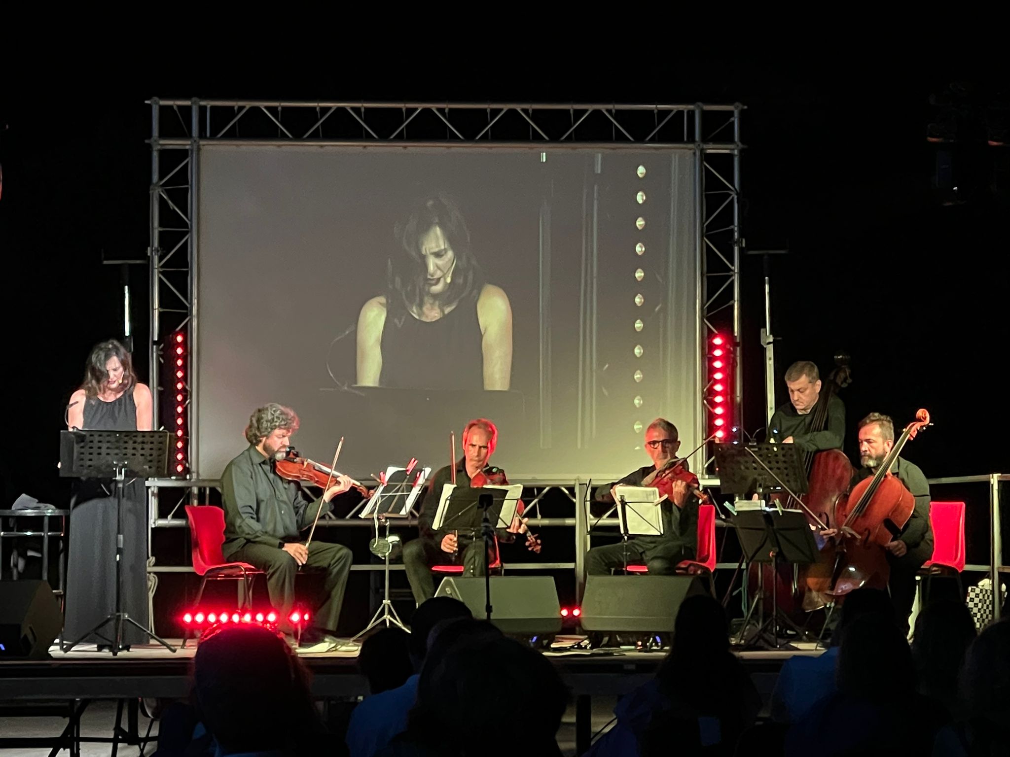 In scena la reinterpretazione in chiave musicale di uno spettacolo che ha avuto successo in tutto il mondo, ispirato al testo “Il salice e la betulla”, dedicato alla regina Costanza d’Altavilla e al re Federico II di Svevia, suo figlio. Una ricostruzione storica che vede la bravissima Egle Doria recitare i punti salienti della vita di Costanza e dell’amore materno per il suo Federico, spesso in contrapposizione con il marito Enrico. Le musiche originali sono state magistralmente eseguite dal vivo dai bravissimi musicisti siciliani: Alessandro Cortese, Antonio D’Amico ai violini, Aldo Randazzo alla viola, Gerardo Maida al violoncello, Giuseppe Giacalone al contrabbasso che hanno anche regalato al pubblico presente una sorpresa eseguendo alcune famose arie del grande compositore premio Oscar Ennio Morricone.
