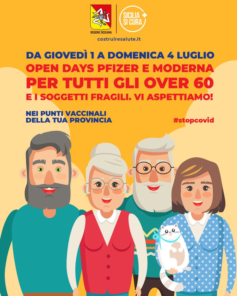 Tornano gli "Open days" in tutti i punti vaccinali delle province siciliane. L'iniziativa, in partenza da giovedì 1 fino a domenica 4 luglio, è rivolta ai soggetti fragili e a quelli di età pari o superiore a 60 anni che in questi quattro giorni potranno ricevere il vaccino Pfizer o Moderna senza prenotazione.