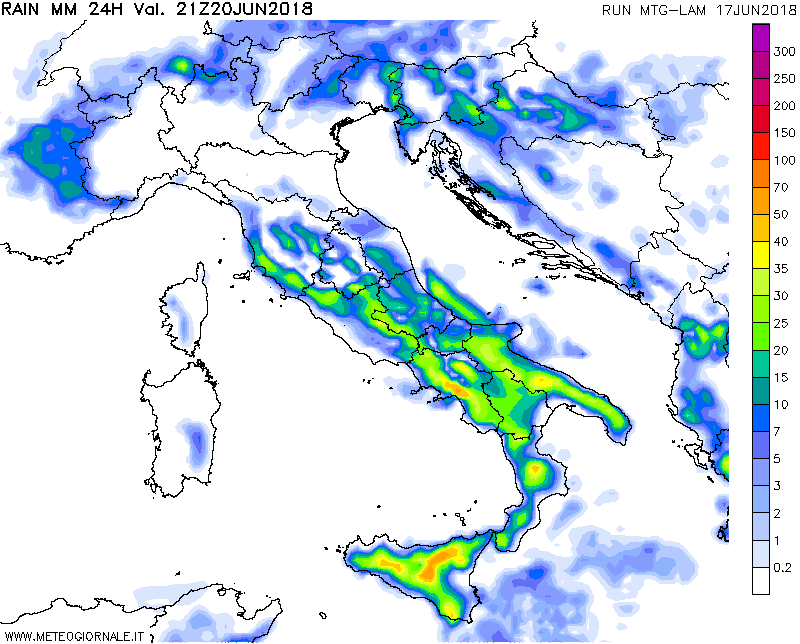 *Mercoledì:* ad nuovo e più marcato generale abbassamento dei geopotenziali in quota seguiteranno massicce infiltrazioni balcaniche di aria fresca ed instabile già a partire dalla notte. Rovesci e temporali sparsi colpiranno *messinese orientale*, *catanese* e *siracusano* con fenomeni localmente abbondanti, tempo migliore altrove. Tra la mattinata ed il primo pomeriggio attività cumuliforme in veloce sviluppo su parte del territorio regionale con rovesci e manifestazioni temporalesche sparse con *possibili nubifragi* tra *Sicani*, *Appenino siculo*, *monti Iblei* ed*etneo*. Piogge sparse e rovesci sulle rimanenti aree con pochissime aree risparmiate. Lento miglioramento in serata.