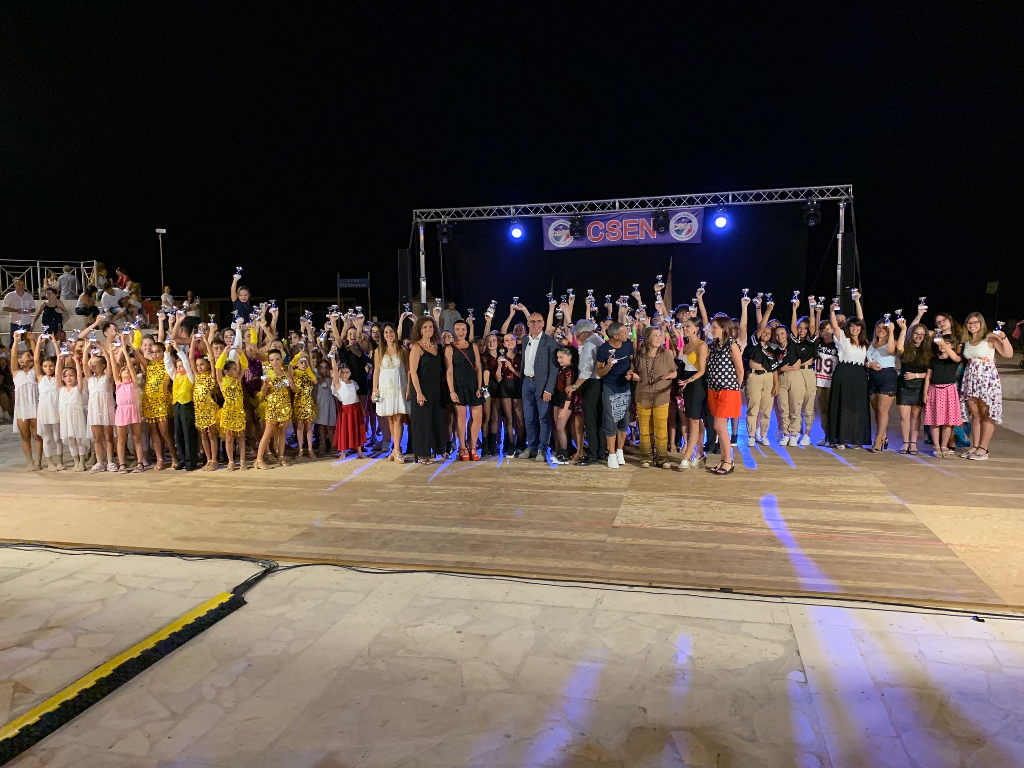 Il mondo della danza sportiva in vetrina. Ieri sera, l’anfiteatro del lungomare Pietrenere, a Pozzallo, ha ospitato la settima edizione di “Csen danza e non solo”. L’appuntamento è stato promosso dal Centro sportivo educativo nazionale sotto la guida del presidente provinciale di Ragusa, Sergio Cassisi, con la collaborazione del consigliere regionale Csen, Raffaele Furnaro, e della responsabile provinciale danza sportiva Eliana Curiali. A patrocinare la manifestazione l’amministrazione comunale rappresentata ieri dal sindaco, Roberto Ammatuna, e dal vice Giuseppe Giudice, assessore comunale allo Sport, che sono intervenuti per consegnare un riconoscimento ai maestri che hanno coinvolto le proprie associazioni nell’esibizione dimostrativa: Maria Di Stefano per Un mondo di luci; Concetta ed Emanuele Raniolo della Asd Movida; Valentina Nocca di Danzarte Centro studio danza; Renata Guastella di Danzaperdire; Luisa Sinacciolo della Sport Dance Akademy; Ramona Di Raimondo della New Flash Dance Academy; Emanuele Spadaro della Dancing Free Star. Tra gli ospiti, una cantante proveniente dall’isola di Malta che ha fatto applaudire il numeroso pubblico entusiasta per la qualità della proposta. “Ma più di tutto – spiega Cassisi – è da sottolineare il fatto che ad adoperarsi per rendere nella maniera migliore i balli e le performance sono stati gli stessi allievi. Un bel modo di combinare la tensione ideale tipica di questi momenti con la voglia di divertirsi”. A curare il service audio e luci Antonello Mineo della Charlie Chaplin eventi.