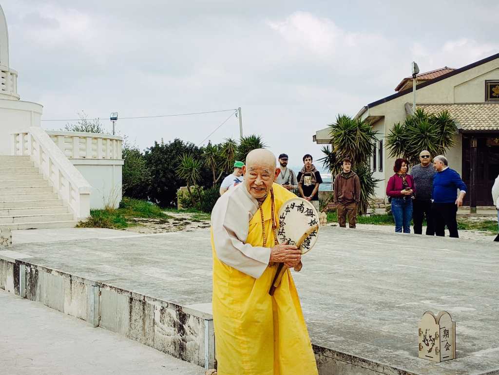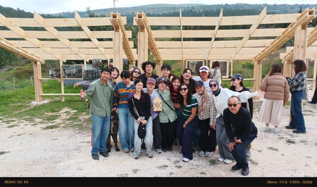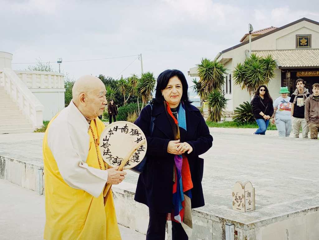 Gli studenti (italiani, giapponesi, svizzeri, inglesi, marocchini, ma provenienti anche dalla Malesia e dall’Iran hanno realizzato delle strutture modulari, nell’ampio piazzo antistante la pagoda e un chioscho in posizione panoramica con vista sulla vallata che dalla collina degrada verso il mare, lungo il sentiero che conduce verso la pagoda. All’interno del chiosco sarà piantumato un carrubo che – crescendo – potrebbe abbracciare il chiosco. Nelle strutture realizzate sono state posizionate delle opere d’arte (alcune dell’artista comisano Giovanni Lacognata) che propongono i temi della guerra e della pace oggi minacciata. La realizzazione delle strutture, realizzate dagli studenti italiani Giacomo Ruello e Nicolò Madera e da un gruppo di studenti dell’università di Tokyo, è stata guidata dal professore Hiroto Kobayashi, docente che si occupa dell’architettura e dell’ingegnerai delle emergenze e quindi della realizzazione di strutture modulari provvisorie e di emergenza, ma rispettose della sostenibilità ambientale, che possono essere smontate e realizzate. Anche le strutture realizzate a Comiso saranno smontate e conservate. Per l’inaugurazione erano presenti il sindaco Maria Rita Schembari, il deputato regionale Giorgio Assenza, il monaco Gyosho Morishita e il professore Hiroto Kobbayashi. «È stata un’esperienza per noi importante – racconta Nicolò Madera – a Comiso abbiamo sperimentato nuove tecniche costruttive, rispettose dell’ambiente e lo abbiamo fatto con studenti di varie nazionalità. C’è con noi una studentessa iraniana e per lei questi giorni sono veramente difficili. Ma realizzare questa struttura nel “parco della pace”, accanto alla pagoda, ci permette di dialogare in modo nuovo con il territorio e di lanciare un segnale che un modo diverso è possibile».