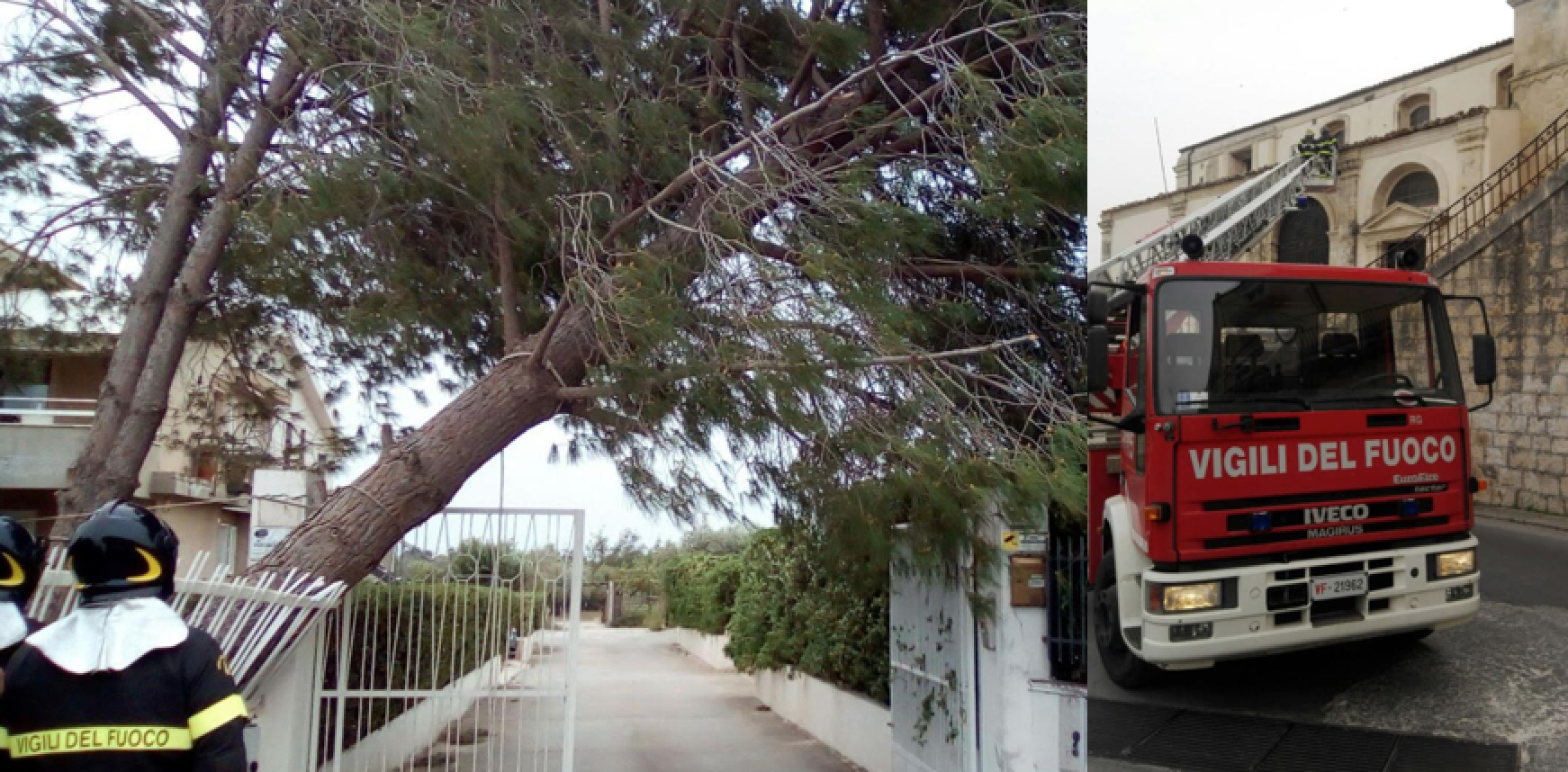 *Dalle prime ore del mattino tutte le squadre disponibili del Comando provinciale, operano nel territorio per far fronte ai danni causati dal forte vento che imperversa negli iblei.*