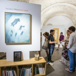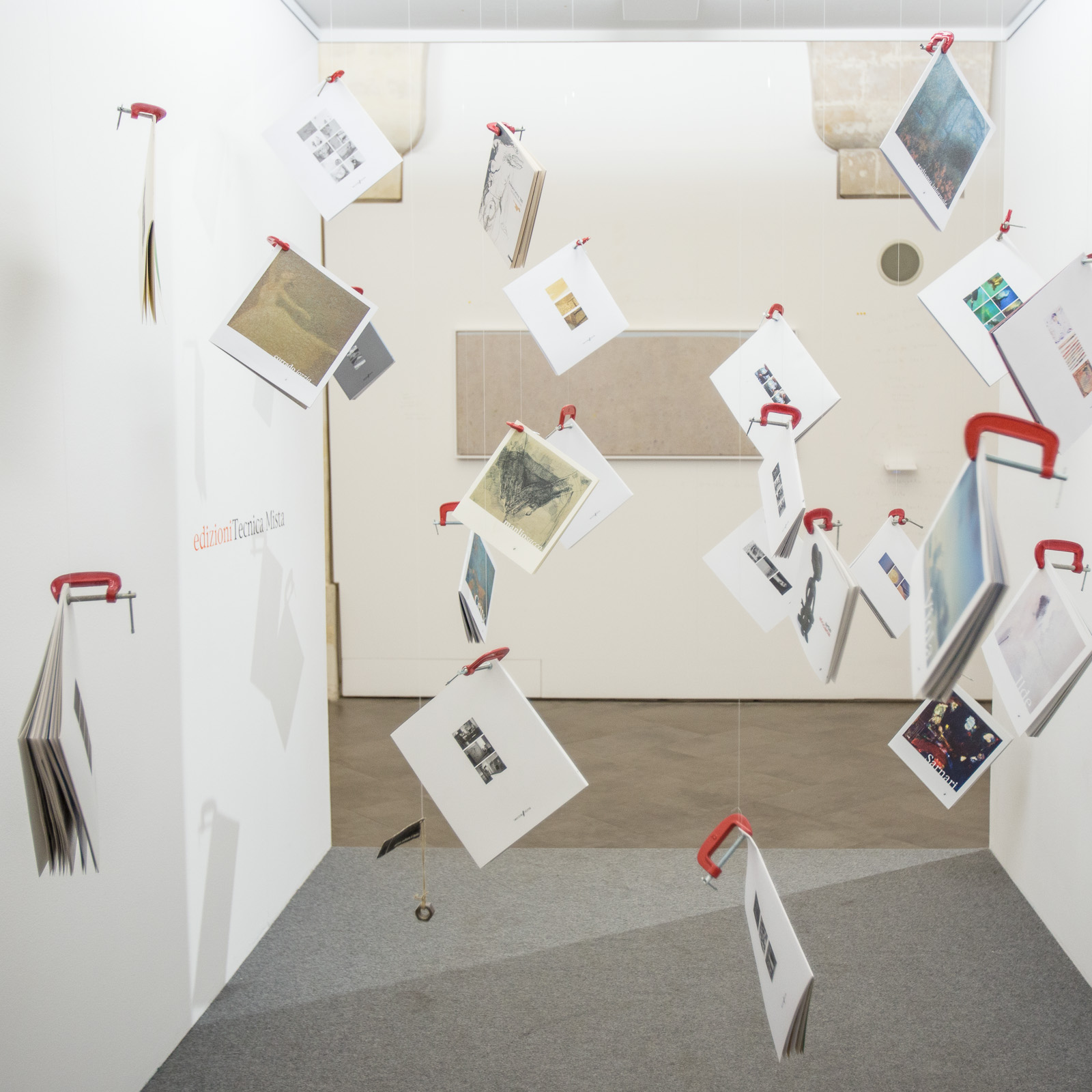 Al centro della mostra un allestimento creativo di tutte i libri editi da Tecnica Mista, da cui si ha un’idea dell’impressionante mole di progetti ed eventi realizzati in questi anni, anzi solo di quelli che hanno avuto una pubblicazione; perché a vedere scorrere le migliaia di immagini degli eventi nei monitor, si immaginerebbero venti o trent’anni di attività e non appena dieci.