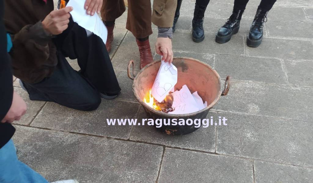 “Disarmiamo il patriarcato”: corteo dell’8 marzo a Ragusa, simbolicamente bruciata una copia del ddl Bongiorno