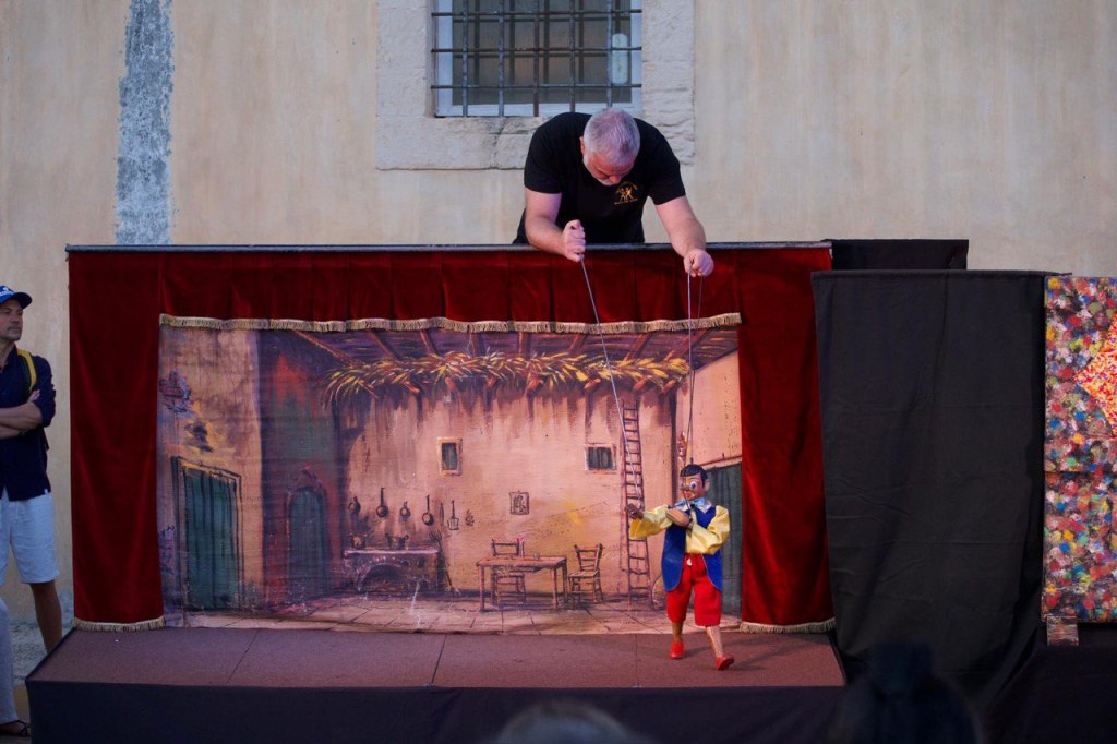 Ad aprire la rassegna, uno spettacolo che ha conquistato grandi e piccini: “Pinocchio all’Opera dei Pupi” dei Fratelli Napoli, maestri burattinai da cinque generazioni, ha trasformato la facciata del castello in un palcoscenico incantato, coinvolgendo il pubblico in una narrazione partecipata. I bambini, invitati a interagire con le marionette, hanno abbattuto la “quarta parete”, diventando parte attiva di uno spettacolo che fonde tradizione e innovazione, perfetta metafora del festival stesso.