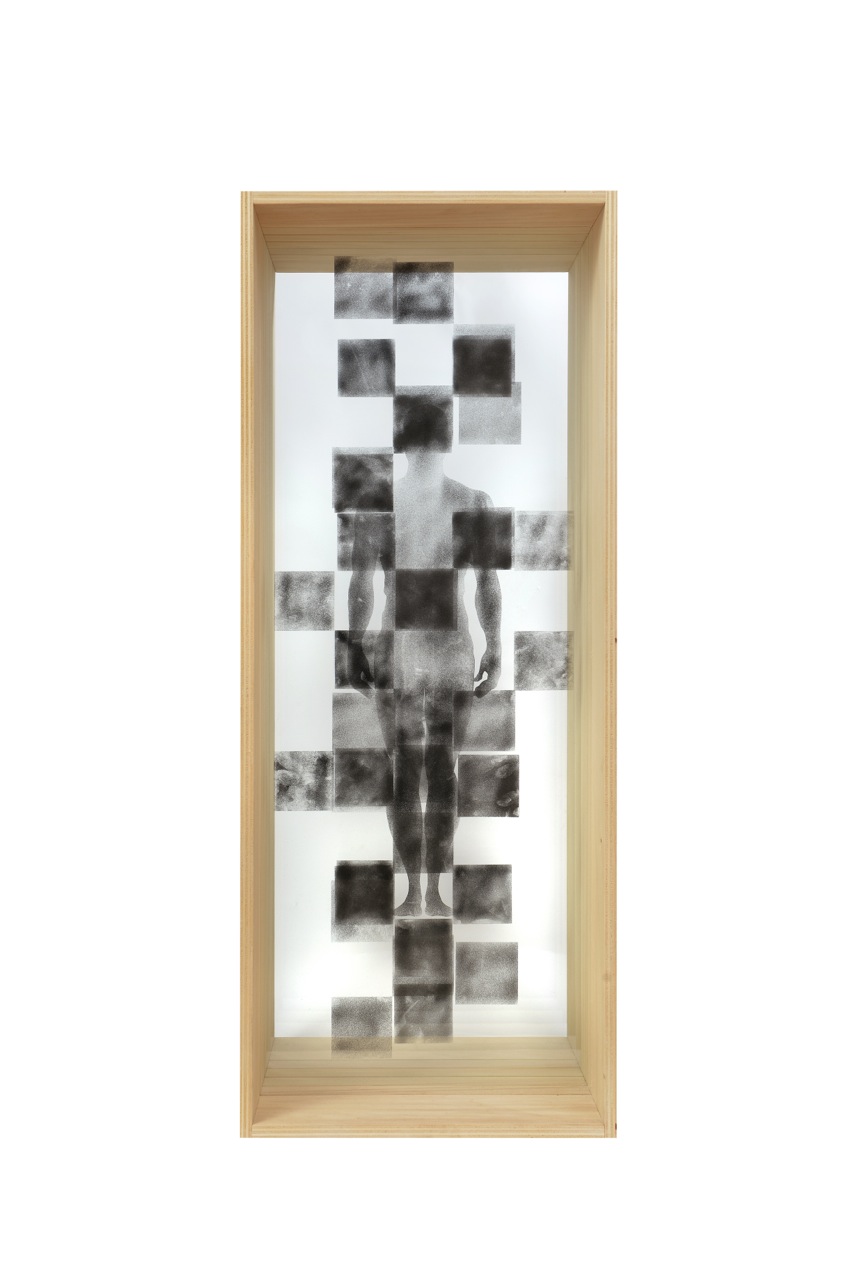 “Sono uomini e donne che hanno perso la loro identità – scrive infatti la curatrice Giovanna Batolo – come risulta chiaro guardando IN-VITRO, dove queste figure, realizzate con della fibra vegetale carbonizzata in ambiente privo di ossigeno e inserite in due lastre di vetro, hanno perso la loro forza di singolo in favore di una moltitudine indistinta”.