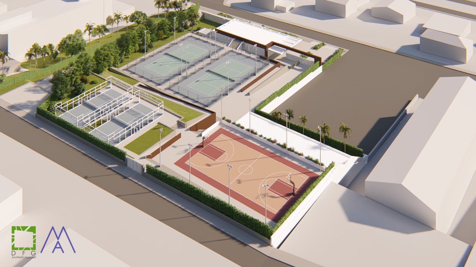 Ci vorranno circa 2 anni per poter realizzare questo progetto che dovrebbe diventare operativo, secondo quanto affermato stamani dagli amministratori, nell’estate del 2021. Il progetto, curato dall’architetto Davide Scrofani (Dfg Architetti Associati) e dall’ingegnere Mario Addario, prevede campi da tennis, paddle, un campo polifunzionale da basket, calcetto e volley. Ci sarà spazio per gli spogliatoi e per l’area bar. Il costo dell’intervento sarà di 800 mila euro ottenuti tramite un fondo del Credito Sportivo che dovrà essere restituito in rate annuali da 50 mila euro. Non si esclude la gestione esterna proprio per recuperare queste somme. Entro l’anno il progetto esecutivo e poi l’appalto.