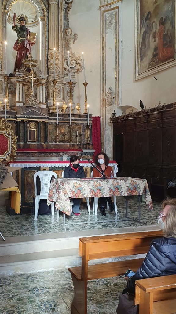 Dopo lo stupore manifestato dai visitatori il parroco don Rosario Rabbito ha avviato l’incontro raccontando le circostanze fortuite che hanno condotto alla scoperta di parte dei teleri del Carmine, nonchè delle pessime condizioni nelle quali le opere sono state rinvenute.