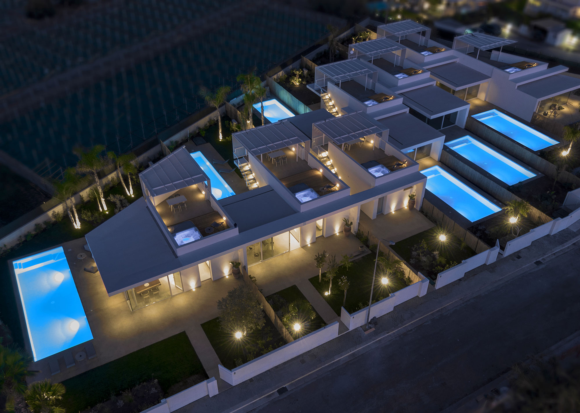 Ciascuna villa è in grado di accogliere famiglie e gruppi di amici che vogliono scoprire la Sicilia con una maggiore indipendenza. La luce naturale è uno degli elementi chiave dei living open space, opera dello studio Architrend, insieme al comfort degli arredi *Simmons* e alla cura dei dettagli vintage che arredano gli spazi. In un panorama di viaggiatori sempre più coscienti degli aspetti naturali, l’energia solare che alimenta ogni villa, rende Villas Don Serafino un pioniere delle risorse rinnovabili dell’ospitalità di lusso extra-alberghiera.