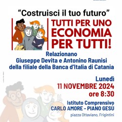 Il Lions Club Modica in collaborazione la Banca d’Italia ha organizzato presso l’istituto comprensivo “Carlo Amore – Piano Gesù” a Frigintini un laboratorio didattico sull’educazione finanziaria rivolto agli studenti della terza media. Sul tema *”costruisci il tuo futuro, tutti per uno economia per tutti!”* hanno relazionato Giuseppe Devita e Antonino Raunisi, esperti della filiale di Catania della Banca d’Italia. I due relatori hanno spiegato con slides, giochi interattivi e gadget alcuni aspetti del funzionamento dell’economia: dal ruolo delle banche agli strumenti di pagamento ed alla gestione del risparmio con attenzione agli investimenti rischiosi. Il laboratorio si è tenuto presso la sede centrale di Frigintini dell’istituto in telecollegamento con le altre sedi distaccate site a Cannizzara e a Modica Alta coinvolgendo oltre cento studenti. Ad introdurre i lavori sono intervenuti la dirigente dell’istituto Giulia D’Urso e ed il presidente del Lions Club Modica Giovanni Liberatore. L’iniziativa si è svolta in contemporanea in altre scuole italiane, in quanto novembre è il mese dell’educazione finanziaria, una iniziativa nazionale giunta alla settima edizione. “Con il laboratorio didattico richiesto dal Lions Club – spiega Giulia D’Urso dirigente dell’istituto “Carlo Amore – Piano Gesù” – abbiamo attuato una iniziativa prevista dal Ministero dell’Istruzione che mira a valorizzare ed enfatizzare l’importanza dell’educazione finanziaria e serve per formare dei cittadini che partecipino attivamente alla vita del Paese”. “Il Lions Club Modica, in collaborazione con la Banca d’Italia, – commenta il presidente del Lions Club Modica Giovanni Liberatore – per il quarto anno consecutivo ha voluto realizzare un momento di riflessione sull’educazione finanziaria. Rispetto agli anni precedenti ci stiamo rivolgendo alle scuole medie per sensibilizzare i ragazzi sul funzionamento dell’economia e sulla gestione delle finanze personali”.