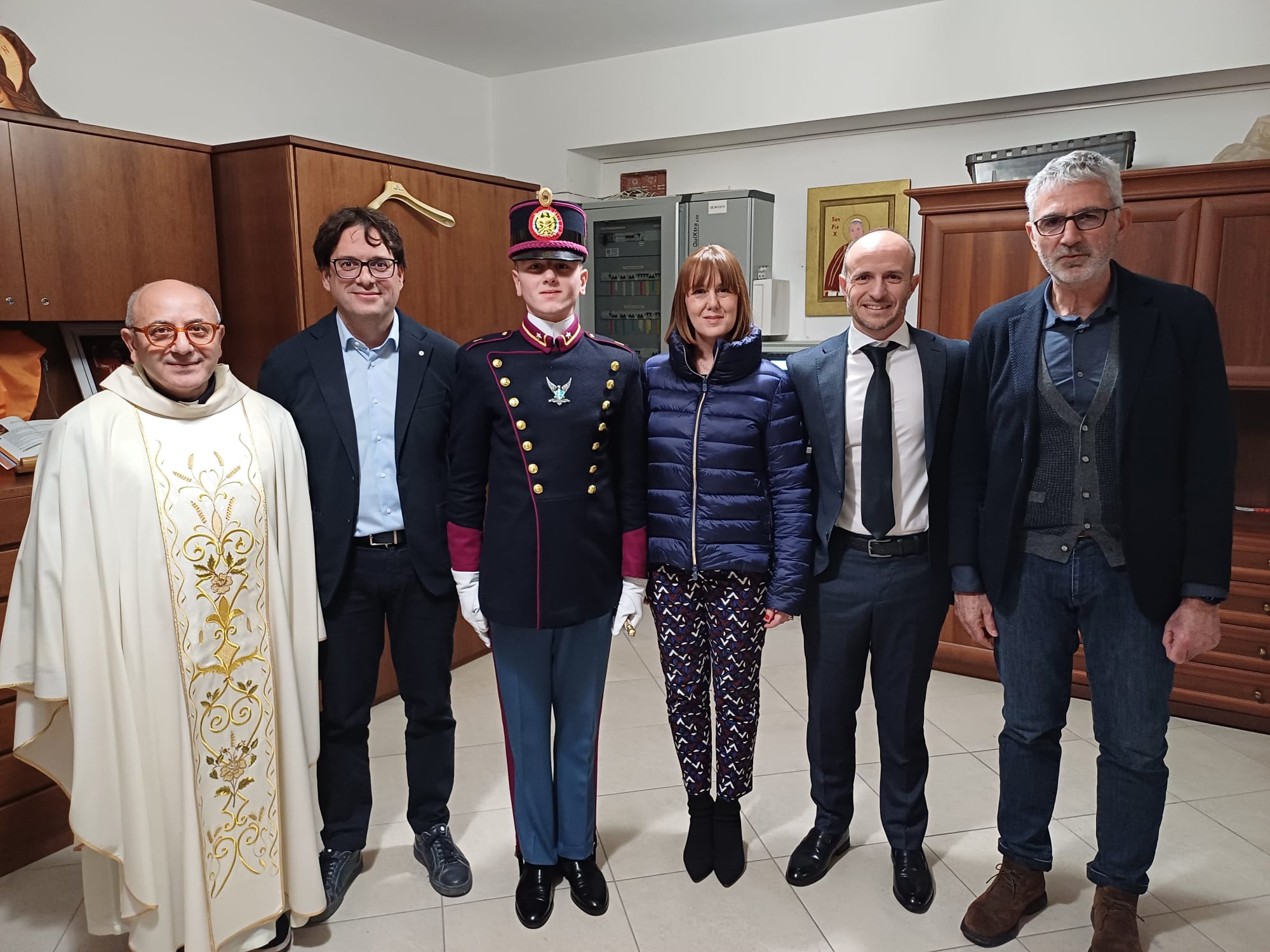 Durante la celebrazione, si è svolta la solenne “Benedizione dell’Allievo Ufficiale”, una tradizione legata all’Accademia Militare di Modena. Protagonista di questo momento suggestivo è stato Matteo Agosta, Allievo Ufficiale dell’Accademia Militare di Modena dell’Esercito e giovane della comunità, che ha chiesto la benedizione agli inizi del suo percorso formativo.