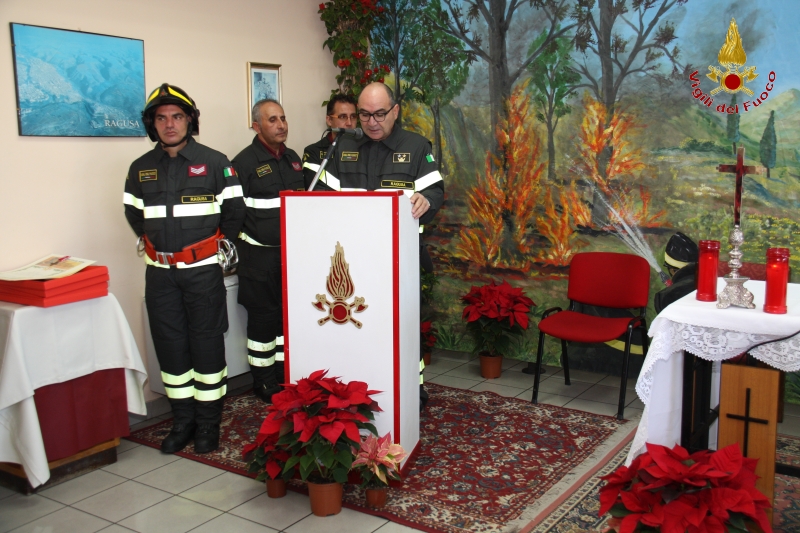 Dopo la messa officiata dal Vescovo della diocesi di Ragusa Mons. Carmelo Cuttitta, sono stati letti i messaggi augurali pervenuti, il Comandante ing. Aldo Comella ha tracciato il bilancio dell’anno appena trascorso per poi procedere, assieme al Vice prefetto Vicario Dott.ssa Caruso, alla consegna dei diplomi di lodevole servizio a quattro colleghi che pure restando “POMPIERI PER SEMPRE” hanno lasciato il servizio attivo, oltre alle croci di anzianità per il personale che raggiunto i 15 anni di servizio attivo.