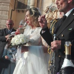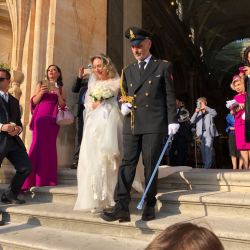 La sposa è stata accolta dal picchetto d’onore con i colleghi dello sposo in divisa e con la sciabolata alla fine della celebrazione del rito.