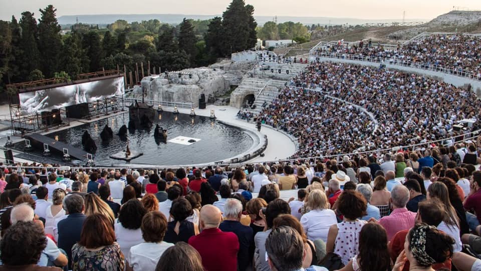 Il primo teatro in Sicilia, il più famoso è quello di Siracusa, seguono quelli di Taormina, Segesta, Catania, Tindari ed Eraclea Minoa. Alle rappresentazioni partecipava tutto il popolo, pagando un biglietto d’ingresso d’entità modesta; gli spettatori prendevano posto sulle gradinate durante le ore del giorno (mai della notte) venivano rappresentate ogni volta opere di due autori, tra i quali il pubblico sceglieva il vincitore che veniva solennemente proclamato. Gli spettacoli erano allestiti a spese dello stato e dei cittadini più ricchi; venivano rappresentate opere scritte da grandi poeti: i più famosi sono Eschilo, Sofocle ed Euripide, che scrissero tragedie, e Aristofane, che scrisse commedie. Gli argomenti delle opere erano molto seri: prendevano le mosse dal materiale della tradizione mitica ed epica, e avevano lo scopo di proporre argomenti di riflessione e di maturazione dell’animo.