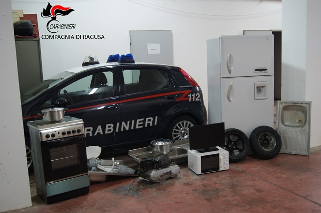Furti a Marina di Ragusa, i Carabinieri trovano refurtiva, dai frigoriferi ai televisori, dalle pentole ai motorini. Erano in mano a dei tunisini