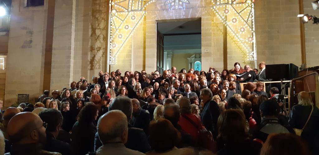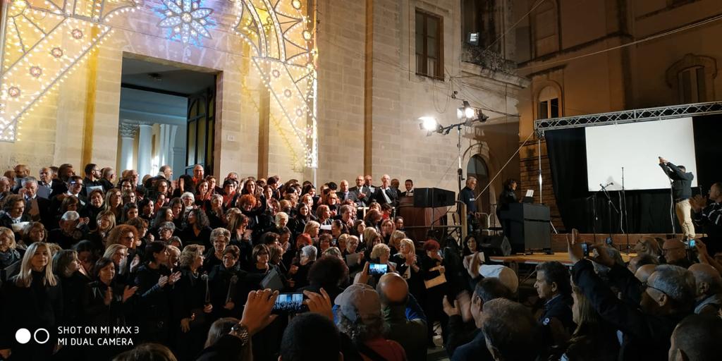 Esplosiva l’ultima esibizione, “Fratello Sole, Sorella Luna”, in omaggio a San Francesco, che ha visto riuniti tutti i coristi, cui si cono uniti anche quelli della Corale Franciscum, sulla scalinata della Chiesa di San Francesco e parte del sagrato.