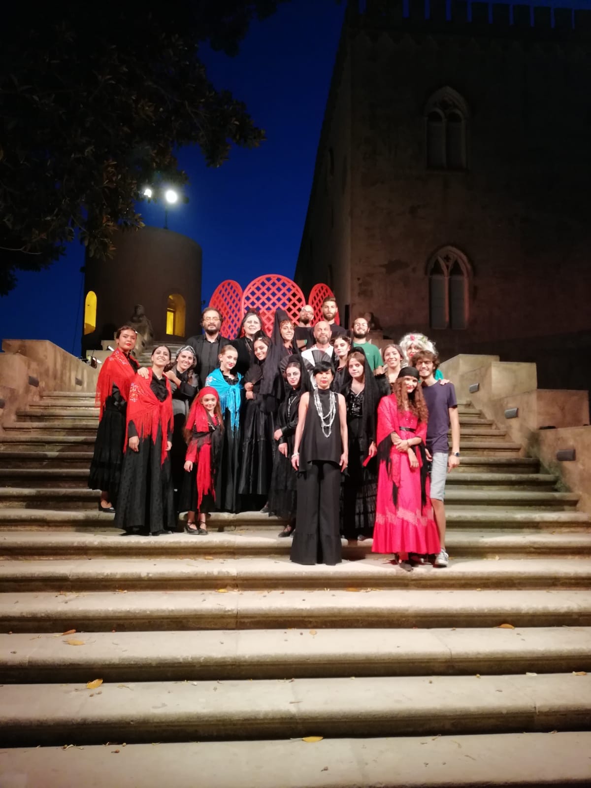 RAGUSA – Cinque serate e cinque sold out per la messa in scena de “La casa di Bernarda Alba”, capolavoro di Federico Garcìa Lorca. Un nuovo successo firmato dalla Compagnia G.o.D.o.T. di Ragusa e portato in scena nella suggestiva location del parco del castello di Donnafugata con la spettacolare scalinata laterale trasformata in palcoscenico. Dal 25 al 29 luglio, con la regia di Vittorio Bonaccorso, l’attrice Federica Bisegna nel ruolo principale, con un numeroso cast tutto al femminile, hanno esaltato la scrittura di Garcìa Lorca, interpretando le più segrete suggestioni del testo. Notevole ed apprezzata la recitazione di *Federica Bisegna* nei panni della protagonista, la vedova Bernarda Alba.