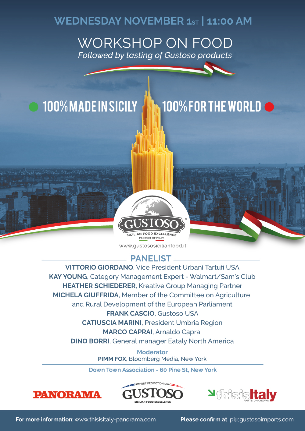 La Rete d’impresa Gustoso Sicilian Food Excellece sarà protagonista *mercoledì 1° novembre* nel workshop dedicato al Food con un focus dedicato a come introdurre e consolidare i prodotti italiani nella grande distribuzione americana.