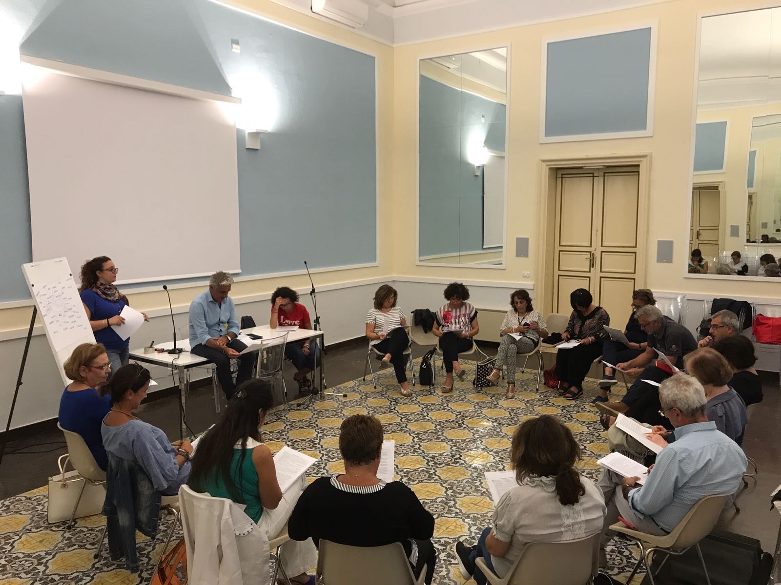 *Cinquanta docenti provenienti dalle province di Ragusa e Siracusa,* con qualche insegnante anche da Catania, hanno preso parte al *corso di aggiornamento “I care” sulla cittadinanza,* promosso *dall’Istituto Galilei-Campailla di Modica e dalla Fondazione di Comunità Val di Noto.* Tantissime le richieste di partecipazione, ben superiori al numero di cinquanta fissato come massimo. Le prime due giornate intense, *nel clima ‘caldo’ e nell’ambiente bello della Casa don Puglisi di Modica, *sono state *guidate da padre Giovanni Salonia,* direttore dell’Istituto di Gestalt Kairòs H.C.C., e da *Antonio Sichera, *docente di letteratura all’Università di Catania. Un intreccio di ‘sguardi’ sul nostro tempo e sulla grande tradizione culturale ripresa con testi letterari, ma anche scientifici, opere d’arte, brani musicali.