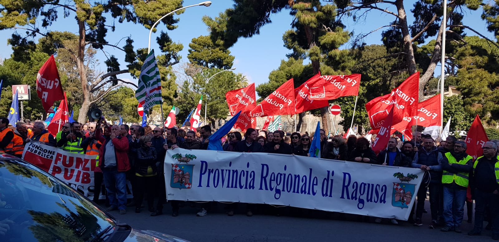 La manifestazione è abbastanza partecipata. La vertenza riguarda più di 4mila lavoratori da anni abbandonati in un limbo legislativo deprimente e devastante per i servizi da rendere alle comunità amministrate. Il governatore siciliano Musumeci aveva messo al centro del suo programma elettorale il rilancio delle ex province, ma a distanza di 15 mesi dalla sua elezione la situazione non è cambiata, anzi è peggiorata perchè gli enti sono tutti in predissesto e nell’impossibilità di approvare i bilanci. A Siracusa è stato già dichiarato il dissesto e i dipendenti non prendono lo stipendio da 4 mesi, a Messina il sindaco metropolitano ha ‘chiuso’ l’ex provincia e messo in ferie forzate tutto il personale. Un quadro disastroso che è la fotografia impietosa su una riforma avviata e mai portata a termine.