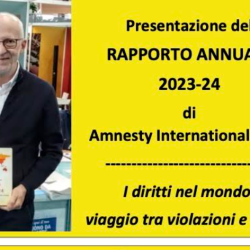 La presentazione avverrà in via Roma, angolo C.so V. Veneto, mercoledì 25 settembre 2024, alle ore 18.30, a cura di Riccardo Noury, portavoce di Amnesty International Italia.